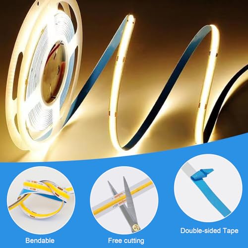 – DC12V/DC24V COB-LED-Streifen KÖNNEN NICHT direkt an AC 220-240V angeschlossen werden! Es muss eine DC12V/DC24V-Stromversorgung hinzugefügt werden. Dieser Artikel enthält KEIN Netzteil, bitte kaufen Sie es zusätzlich!