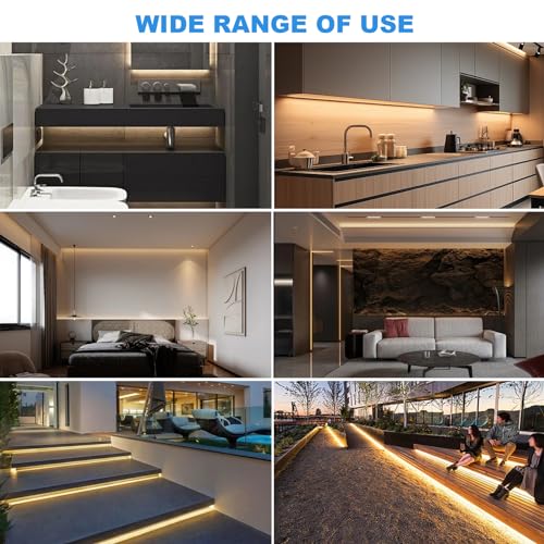 【Einfache Installation】: Unsere COB-Lichtleisten werden mit einer selbstklebenden Rückseite geliefert und können problemlos an der Wand oder am Boden angebracht werden, ohne dass weitere Werkzeuge erforderlich sind.