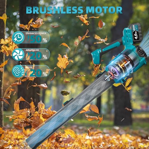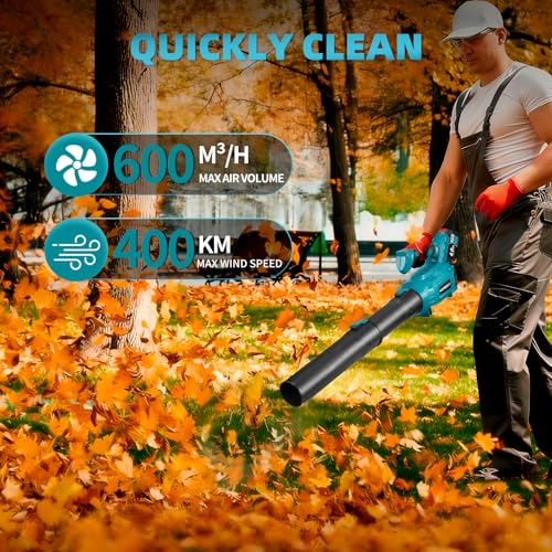 【Höchste Power für einen sauberen Garten】Erleben Sie unübertroffene Reinigungskraft! Unser Akku Laubbläser mit modernstem bürstenlosem Motor erzeugt einen Turbo-Luftstrom von bis zu 400 km/h und 10m³/min. Selbst nasses, schweres Laub und hartnäckiger Schmutz sind kein Problem mehr.