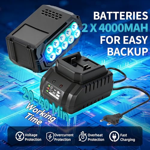 【Lange Laufzeit & unterbrechungsfreies Arbeiten】Genießen Sie maximale Freiheit! Das Set enthält zwei wiederaufladbare 6.0Ah Akkus und ein Schnellladegerät. Wechseln Sie die Akkus und arbeiten Sie ohne lästige Pausen. Die hochentwickelten Akkus bieten eine langanhaltende Batterieleistung für sogar die größten Grundstücke.