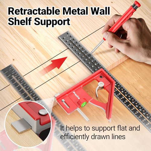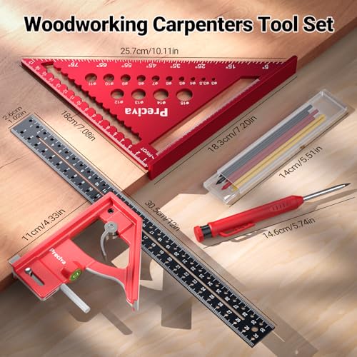 Zimmermannswinkel Set, Preciva Metrisches Streichmaß und Dreiecke Zimmermannswinkel-Set, mit Baubleistift, Kombinationswinkel Lineal aus Aluminiumlegierung für DIY, Holzarbeiten, Heimarbeit