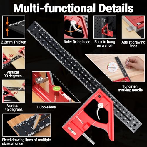 【Multifunktionales Kombinationswinkel Set】Dieses Set enthält eine 180mm Dreieckslineal(Rot) und eine 300mm Streichmaß(Schwarz mit Rot). Dieses multifunktionale Kombinationswinkel-Set ist mit einer klaren metrischen Messskala ausgestattet und für Holzbearbeitung geeignet.